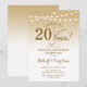 Invitación de celebración del 20 aniversario de boda. Diseño en oro y blanco con luces de hadas y fuente elegante. ¡Por 20 años! Puede ser personalizado para cualquier año de matrimonio. Envíame un mensaje si necesitas más personalización.