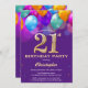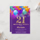 21 Aniversario Globos morados y dorados coloridos e Invitación a Confetti. Para una mayor personalización, haga clic en el botón "Personalizar" y utilice nuestra herramienta de diseño para modificar esta plantilla.