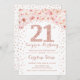 Invitación a la fiesta de cumpleaños número 21. Elegante diseño en rosa falso purpurina dorado y blanco. Presentan rosas rosas rosas color agua, confeti y diamantes. Perfecto para una celebración de glam.