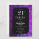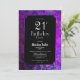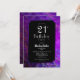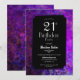 Invitación a una fiesta de cumpleaños negra de 21 años con un marco pintado de color violeta.