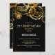 Invite a sus amigos y seres queridos a su cumpleaños 21 con esta invitación a los engranajes de vapor de oro y negro.