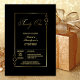 Invite a sus amigos y seres queridos a su fiesta de 21 años con esta moderna invitación de cumpleaños negra enmarcada en oro.