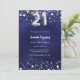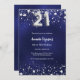 Invitación 21° cumpleaños estrellas de plata azul marino lujo
