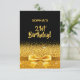 Elegante, clásico, glamuroso y femenino. Cinta dorada y arco con purpurina dorado y brillo, un poco de ostentación y lujo para un cumpleaños. Fondo negro. Con el texto: 21º cumpleaños! al frente. Plantilla para un nombre. Añadir los detalles del evento al reverso.