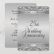 Elaboradas invitaciones de aniversario de bodas de plata para una recepción / fiesta de 25º aniversario de boda. Frente y dorso de plata con texto negro en la parte posterior que da un aspecto elegante a esta invitación de aniversario única.