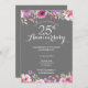 Con delicadas flores de jardín campestre pintadas con acuarela encima y debajo de la información personalizada de su aniversario de bodas de plata de 25 años en tipografía blanca chic. La parte posterior presenta confeti de purpurina plateada. Diseñado por Thisisnotme©