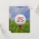 Cerca de una pelota blanca de golf sobre una teta roja en el césped para la invitación de la fiesta de cumpleaños 25.
