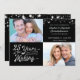 Invite a sus invitados con esta invitación de aniversario de bodas número 25 en negro y plateado con tipografía moderna pero retro que dice "25 años en la elaboración" y le permite incluir su año de bodas como "establecido en 19XX" incrustado en el diseño de 25 AÑOS EN LA ELABORACIÓN y agregando sus fotos de ENTONCES y AHORA. La parte posterior incluye información adicional de la invitación. CONSEJO DE FOTO: Para obtener resultados más rápidos y mejores, elija una foto con el sujeto en el medio y/o pré-córrela a una forma similar a la mostrada ANTES de subirla y llenará perfectamente el espacio de la foto. Póngase en contacto con el diseñador si desea que se modifique este diseño o se coloque en otro producto para coordinar o complementar su celebración de aniversario de bodas de plata.