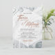 Personalice esta invitación para el 25º aniversario del boda con sus nombres y detalles de celebración. El fondo de mármol de moda con colores rosegold estampados es moda y divertido.