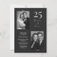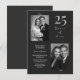This elegant 25th wedding anniversary invitation features a refined silver-on-charcoal color palette, classic fancy script typography, and a modern two-photo layout that highlights a meaningful journey together. The black and white aesthetic paired with soft calligraphy details creates a timeless look that feels both heartfelt and sophisticated.