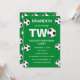 Segundo fiesta de cumpleaños para un hincha de fútbol, deportes, niños, chicos, para él. Verde y blanco, moderna, elegante invitación a la fiesta de cumpleaños. Por favor, personalícelo con sus detalles.