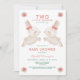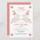 Dulce chicas gemelos de primavera invitan a ducharse. Dos pequeños conejitos están en camino, Chicas gemelos invitan a Baby Shower. Una ducha gemela chica invita a los bebés con conejitos dulces con arcos rosas de coral.