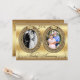Esta elegante invitación para la fiesta del 50 aniversario de bodas tiene un par de marcos de fotos ovalados marrones y dorados ornamentados con perlas y volutas y corazones intrincados. Hay placas de oro grabadas falsas que dicen "Entonces" y "Ahora" que se pueden quitar. Hay dos volutas tipo filigrana de esquina coincidentes en la parte delantera y cuatro en la parte trasera, junto con campos de plantilla para que agregues tu propio texto. Todo el texto es personalizable, y también las opciones de papel. TAMBIÉN, si cambias las fuentes o tamaños de fuente, es posible que tu texto ya no quepa correctamente. Zazzle no editará nada por errores tipográficos, alineación o cualquier otra cosa, y yo no veré tu invitación. Todo se imprimirá como aparece en tu monitor. Si necesitas ayuda con la invitación, por favor contáctame ANTES de hacer el pedido. Esta invitación está diseñada para ajustarse a la tarjeta de tamaño 5x7. Si cambias a otro tamaño, el diseño ya no se ajustará correctamente, así que si deseas un tamaño diferente, por favor contáctame para que pueda rediseñarlo para ti