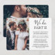 Invite a familiares y amigos a presenciar cómo dices "sí, acepto" de nuevo con una elegante invitación de bodas secuela moderna de 2 fotos. Todo el texto es simple de personalizar, incluyendo la cita que dice "lo hacemos parte II". Personalízala para cualquier tipo de celebración de matrimonio, como una ceremonia de renovación de votos, recepción del primer aniversario, fiesta después de la fuga, hora del cóctel o cena. Personaliza con los detalles que desees, incluyendo fecha de matrimonio, RSVP, código de vestimenta, sitio web, etc. (CONSEJO DE COLOCACIÓN DE IMAGEN: Una forma fácil de centrar una foto exactamente como la deseas es recortarla antes de subirla al sitio web de Zazzle). El diseño moderno minimalista en negro y blanco presenta dos fotos de la pareja recién casada, caligrafía de letra manuscrita trendy y tipografía de estilo máquina de escribir chic. Ya sea que te hayas fugado debido a la pandemia de COVID o te hayas reducido a una boda más pequeña e íntima, la fiesta del "felices