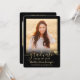 Comparte la alegría de una graduación de secundaria o universitaria e invita a la familia y amigos a celebrar con estos personalizados dos invitaciones en negro y oro. Todas las imágenes y la redacción son simples de personalizar. (IMAGEN PLACEMENT TIP: Una manera fácil de centrar una foto exactamente como quieres es recortarla antes de subirla al sitio web de Zazzle.) Esta plantilla está formateada para una fiesta de graduación, pero puede cambiarse fácilmente a una casa abierta o a cualquier tipo de evento. Si sólo se prefiere una tarjeta de invitación, simplemente cambie el texto para incluir cualquier detalle de su elección, como los nombres de los padres, honores especiales, título de grado, planes futuros de graduado e información de contacto, o presupuesto inspirador favorito. Si hay algún texto que no se desee simplemente borrarlo. El diseño presenta una tapa de graduación de Relieve metalizado de oro falsa, caligrafía de escritura a mano, tipografía minimalista moderna y dos fotos de su elección, como imágenes de la ceremonia de graduación o de la ceremonia de graduación. Tenga en cuenta que el oro es color impreso, no Relieve metalizado metálico. Esta elegante tarjeta de invitación para graduación es una manera moderna y moda de comenzar su celebración especial del día. ¡Felicitaciones al graduado!