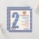 2das invitaciones náuticas de la fiesta de cumpleaños del velero azul, blanco, ofreciendo el número 2 modelado con rayas azules, blancas, un ancla y la rueda del capitán. Hay una frontera rayada azul y blanca alrededor de ella. Este diseño lindo tiene una sensación del vintage a él. Conveniente para los muchachos y los cumpleaños de los niños de los chicas. En la parte posterior hay un barco lindo. Esquema de color: azul, rojo, marrón, gris. Algunos elementos del arte de Alicia Smith.