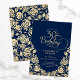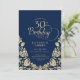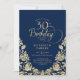Invitación a la fiesta de cumpleaños número 30 de Navy gold elegante. Diseño elegante con rosas, Relieve metalizado de oro falso y tipo de letra de guión de tipografía. La carta de invitación a la moda es perfecta para una elegante celebración de cumpleaños femenina. Personaliza con tus propios detalles. Se puede personalizar a cualquier edad. Invitaciones Zazzle impresas o una plantilla imprimible digital de descarga instantánea.