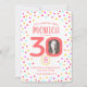 El colorido y luminoso confetti al azar marca el cumpleaños 30 invitaciones sorpresa de fiesta. En coral vivo brillante, rosa caliente, amarillo dorado y verde azul acuático. Añade tu propia foto de tu chica de cumpleaños en el centro del 0 en 30 y personalizar con tu propia fecha de trigésimo cumpleaños, hora y detalles del fiesta. Coral vivo con puntos aleatorios por todo el patrón al revés. Hay otros artículos coincidentes y años de cumpleaños hito disponibles. Diseño original de www.mylittleeden.com en zazzle.