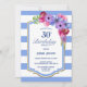 Invitación floral de espliego de rayas azules para la fiesta de cumpleaños número 30.