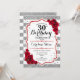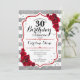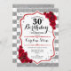 30.ª Invitación de cumpleaños Elegante diseño rojo blanco plateado con falso purpurina. rayas blancas y plateadas con rosas rojas. Perfecto para una elegante fiesta de 30 años.