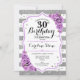 30.ª Invitación de cumpleaños Elegante diseño de lavanda blanca plateada púrpura con falso purpurina. rayas blancas y plateadas con rosas. Perfecto para una elegante fiesta de 30 años.
