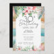 Diseño de plantilla de diseño de diversiones de madera tropical floral y playa. Ajustable para la fiesta de cumpleaños de adultos tropicales, sólo cambia las invitaciones de texto. Invitación de descarga digital imprimible