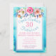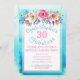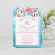 Celebra haber cumplido 30 años al estilo femenino del Té Alto. Flores acuáticas preciosas sobre un fondo de color azul. Si es necesario, esta invitación se puede personalizar a otros 30 años. Hermosos accesorios florales de 30 años.