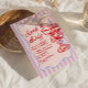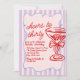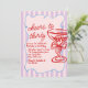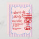 Si buscas una elegante y sencilla invitación para un brunch de 30 años, esta es perfecta para ti. Como pueden ver, presenta un guión escrito a mano magenta rojo con animaciones extravagantes a treinta sobre fondo rosado. Y una copa de champán de color rojo dibujada a mano. Dentro de un marco azul ondulado dibujado a mano y rayas de color morado. Con la foto del personalizable, la parte posterior dentro de un marco ondulado dibujado a mano. Con toda la información que se puede personalizar fácilmente haciendo clic en el botón de personalización. Esta invitación rápida y única de moda para el cumpleaños también es una invitación electrónica digital si quieres enviarla por correo electrónico o por texto. Así que agárralo y haz que tus invitaciones estén verdaderamente comprometidas.