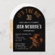Boots Masculine Invitation, Gorra de foto de cumpleaños número 30, muestra un par de botas de vaquero de cuero negro con un gorra de vaquero marrón cubierto por encima. Añade tu foto favorita al revés. Creado por Evco Studio www.zazzle.com/store/evcostudio
