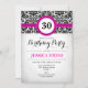 30.ª Invitación de cumpleaños Diseño elegante con damasco blanco y negro y un toque de rosa caliente. Perfecto para una fiesta de 30 años de mujeres. ¡Puede ser personalizado para cualquier año!