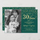 Invitación del 30 Aniversario de Boda con Foto. Diseño elegante en oro y verde esmeralda con letra script y confeti. Se puede personalizar para mostrar cualquier año de matrimonio. ¡Salud por 30 años!