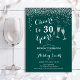 30.ª Invitación de cumpleaños. ¡Salud A 30 Años! Diseño elegante en verde esmeralda, blanco y plateado. Incluye gafas de champán, letra de guión y confeti de plata purpurina. Perfecto para una elegante fiesta de 30 años. Personaliza con tus propios detalles. Se puede personalizar para mostrar cualquier edad.