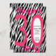 Rayas de cebra y rosa caliente, gran bloque de negrita flirty 30 cumpleaños invitación. ¡Personalizable