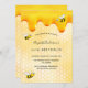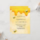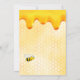 Elegante, divertida, invitación de verano a los 30 años. Fondo amarillo y blanco con un patrón de peine de miel. Decorada con dorada, miel dulce y abejas felices. El nombre está escrito con una escritura de estilo con letras a mano moderna. Cartas negras. Perfecto para un fiesta de té de verano en un jardín, patio trasero. Espalda: patrón amarillo de panal blanco y abeja feliz.