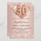 Por un elegante cumpleaños número 30. Fondo subió de gradiente dorado. Decorada con oro rosa, purpurinas falsos de color rubor, chispas y globos. Personalice y agregue un nombre y detalles del fiesta. El nombre está escrito con un guión de estilo con letras a mano, número 30 con fuentes de estilo globo.