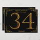 34to, fiesta de cumpleaños, gran Gatsby, negro y oro, bilateral, elegante, editable.