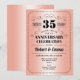 Invitación para la fiesta del 35º Aniversario de Boda. Tarjeta de invitación de coral y negro. Perfecta para una celebración elegante. Puede ser personalizada para cualquier año.