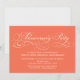 Invitación de fiesta de aniversario con escritura en blanco sobre fondo coral/naranja