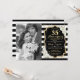 Diseño elegante en negro con dorado falso brillante. Cuenta con rayas blancas y negras, fuente script, rosas blancas y confeti. ¡Se puede personalizar para cualquier año! Envíame un mensaje si necesitas una personalización adicional.