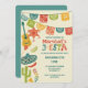 Lleve una fiesta de tercer cumpleaños con temática mexicana con esta personalizado 3-Esta fiesta invita. Están listos para ser personalizados con el nombre del niño de cumpleaños así como todos los detalles de su fiesta personalizado. Las invitaciones se centran en los ilustraciones de temática mexicana en tonos azules, verdes, amarillos, naranjas y rojos con un fondo de color crema.