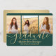 Comparte la alegría de una graduación de secundaria o universitaria e invita a la familia y amigos a celebrar con estas invitaciones de color verde y oro del collage de fotos personalizado 3. Todas las imágenes y la redacción son simples de personalizar. (IMAGEN PLACEMENT TIP: Una manera fácil de centrar una foto exactamente como quieres es recortarla antes de subirla al sitio web de Zazzle.) Esta plantilla está formateada para una fiesta de graduación, pero se puede personalizar fácilmente como una invitación a casa abierta o tarjeta de invitación. Simplemente cambie el texto para incluir cualquier detalle de su elección, como los nombres de los padres, honores especiales, título de grado, cita inspiradora favorita, planes de graduación para el futuro o nueva dirección. Si hay algún texto que no se desee simplemente borrarlo. El diseño presenta un fondo verde, una tapa de tablero de mortero de Relieve metalizado falsa, caligrafía de escritura a mano, tipografía minimalista moderna y tres fotos de su elección, como imágenes de la ceremonia de graduación o imágenes de la ceremonia de graduación. Tenga en cuenta que el oro es color impreso, no Relieve metalizado metálico. Esta elegante tarjeta de invitación para graduación es una manera moderna y moda de comenzar su celebración especial del día. ¡Felicitaciones al graduado!