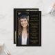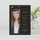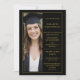 This elegant photo graduation party invitation features a sophisticated vertical layout on a black background framed by a delicate gold border, creating a timeless and refined presentation. A full-length portrait of the graduate is displayed along one side, beautifully balanced by classic serif typography on the opposite side, all in a beautiful gold-colored font. The design includes a formal announcement of the graduation, the university and degree details presented in clean, structured text, and a clearly defined graduation party section with event date, time, and location. The overall look is polished, graceful, and upscale, making it ideal for celebrating this milestone with style and elegance. The back of the card offers 2 more photos along with timely quotes that you can change or delete using the design tool. If you need help or have questions, please message me.