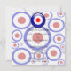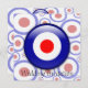 Objetivo mod efecto 3d sobre un fondo inspirado en un patrón rojo blanco y azul sesenta