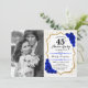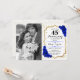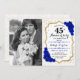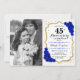 Invitación del 40º Aniversario de Boda con Foto. Diseño elegante en zafiro y blanco con falso brillo dorado. Cuenta con letra script, rosas azules reales y confeti. ¡Se puede personalizar para cualquier año! Envíame un mensaje si necesitas más personalización.