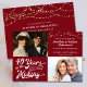 Invite a sus invitados con esta invitación de aniversario de bodas número 40 en rojo rubí con tipografía retro que dice 40 AÑOS EN CREACIÓN y le permite incluir su año de bodas como parte del diseño y agregar sus fotos de ENTONCES y AHORA. Los detalles de la invitación a la fiesta están en el reverso.