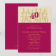 Invitación de aniversario de bodas moderna y llamativa. Ideal para celebrar por todo lo alto un 40º aniversario de bodas. Cuenta con un gran número 40 en color rubí, que es el color tradicional para este aniversario. Otros números mostrados en un color más claro para simbolizar los años pasados. Invitación perfecta para celebrar este aniversario en casa, en un restaurante o en el lugar favorito. Diseño clásico y atemporal. Añada su propio texto.