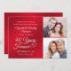 Celebre su 40º aniversario de bodas con esta elegante invitación de foto roja rubí y blanca con un diseño de tipografía de escritura caligráfica 40 AÑOS EN EL PARAÍSO acentuado con corazones entrelazados y 2 fotos (quizás fotos de Entonces y Ahora para un recuerdo memorable). Contacte al diseñador a través de Zazzle Chat o makeitaboutyoustore@gmail.com si desea que se modifique este diseño o en otro color, en otro producto o desea artículos coordinados.