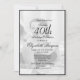 Un 40 aniversario de la elegante invitación personal al Monograma en blanco y negro. La edad puede cambiarse para cualquier edad, no sólo para los 40 años. Una foto puede estar en el frente y en el reverso de la invitación personal. La información se cambia fácilmente a la información de su propio personalizado con la palabra sorpresa que puede ser eliminada, la edad cambiada y la fecha de nacimiento eliminada si lo desea. El reverso tiene el fondo de la foto personal con un monograma personal usando el mismo guión elegante que la invitación.