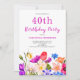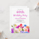 40.ª invitación floral rosa de cumpleaños. Es fácil cambiar el texto.