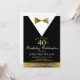 ¿Tienen una celebración de 40 años de fiesta para planear algo especial? ¡Estas invitaciones de esmoquin negro y dorado traerán elegancia a su día especial! El diseño elegante encaja bien con las ideas del pastel de esmoquin negro y oro de cumpleaños. Estas invitaciones a la fiesta de cumpleaños número 60 se pueden personalizar fácilmente con nuestros propios detalles... Categoría: Invitaciones en blanco y negro DIY; ideas de fiesta de 40 años para él; y temas de fiesta de 40 años. Colores: colores dorados y fiestas negros.